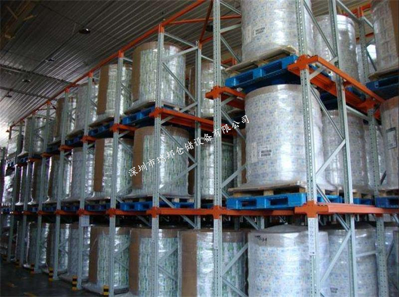 通廊式貨架又稱貫通式貨架、駛入式貨架。貫通貨架是大中型的倉庫中使用較多,可以實現高密度的立體化的存儲管理模式。這是一種不以通道分割的、連續性的整體式倉儲貨架,在支撐導軌(又稱牛腿梁)上,放貨使用的托盤按縱深的方向存放,形成一個個相連的貨位式的單元,這使得貨物可以達到高密度存儲模式。貨物存取從貨架的同一或兩側進出,可實現貨物的“先存先取、后存先取”的存取目的。可以方便的讓平衡重及前移式叉車可方便地駛入貨架中間存取貨物。