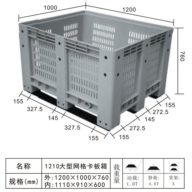 產(chǎn)品名稱型號(hào):1210 大型網(wǎng)格卡板箱